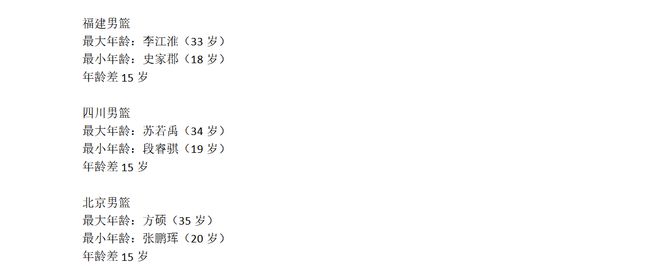 最大年龄:孙鸣阳(31岁)
