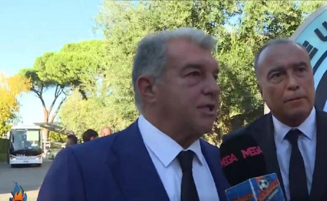 日前,巴萨主席拉波尔塔应邀出席了在罗马举行的欧洲俱乐部联合会(ECA)前身——现称“欧洲足球俱乐部联盟”(EFC)的大会,并受到了巴黎圣日耳曼主席、EFC现任主席纳赛尔的热情接待。期间,他接受了西班牙六台记者的采访。