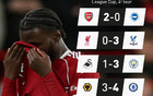 豪门悲喜夜:利物浦0-3出局7场6负 阿森纳2-0迎8连胜 曼城3-1逆转 -